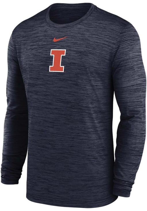 Make a bold statement in this Illinois Fighting Illini Navy Blue Primary Team Logo Velocity Lgnd Long Sleeve T-Shirt! This Illinois Long Sleeve Tee features a screenprint of team logo across center chest. Go, Illini, Go!