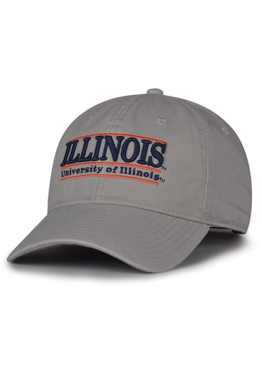 Product Details Product Details MV Sport - Team Color BarTeam bar logo embroidered on frontTeam color crown and visorSlide buckle closureGarment washed twillCotton TwillCurved BillLow CrownUnstructuredWipe clean with cloth or cleaning kitImported Officially Licensed This Grey Fighting Illini Adjustable Hat features a the bar logo embroidered on front crown with pre-curved visor.