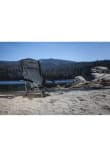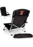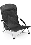 - Heavy-duty, fold-flat portable beach chair that has padded armrests