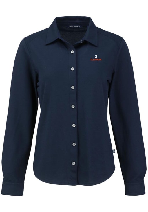 Show your Fighting Illini spirit show in the office with this Illinois Fighting Illini Dress Shirt! Embrace your team spirit and showcase it proudly in this Womens Navy Blue Advantage Soft Pique Long Sleeve Long Sleeve Button Down Shirt. This Long Sleeve Dress Shirt features a team logo on chest.