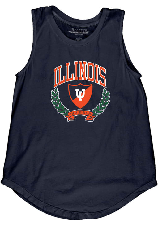 Elevate your tailgating style with this Illinois Fighting Illini Womens Tank Top. Stay fashionable and comfortable in the refreshing Navy Blue Muscle Sleeveless Shirt. Discover the enticing details of this Illinois Tank Top, showcasing a screenprint team name and logo on center chest that's sure to impress.