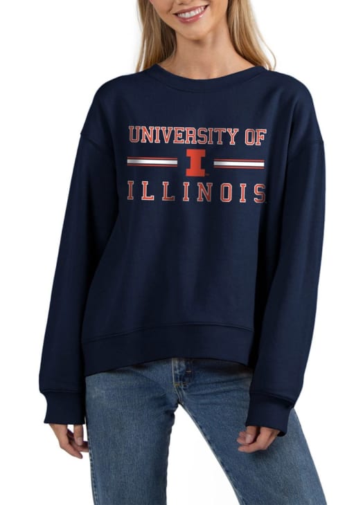 Gear up for the ultimate game day experience with this remarkable Illinois Fighting IlliniWomens Navy Blue Old School Crew Sweatshirt! Designed with the true fan in mind, this Fighting Illini Long Sleeve Sweatshirt features a screenprint team and logo on center chest. Stay warm and comfortable with this Womens Illinois Fighting Illini Crew Sweatshirt.