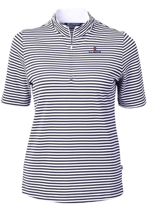 Womens Illinois Fighting Illini Navy Blue Cutter and Buck Virtue Eco Pique Stripe Short Sleeve Pol..