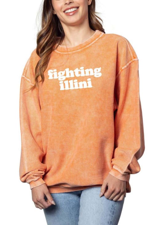 Gear up for the ultimate game day experience with this remarkable Illinois Fighting IlliniWomens Orange Corded Crew Sweatshirt! Designed with the true fan in mind, this Fighting Illini Long Sleeve Sweatshirt features a screenprint team name on center chest. Stay warm and comfortable with this Womens Illinois Fighting Illini Crew Sweatshirt.