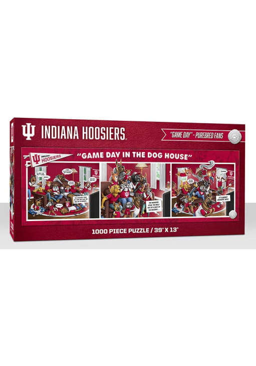 Product Details Product Details 3 panel pictorial comic designFeatures fun play on words3ft long when put togetherDimensions: 39” x 13”Original artwork Officially Licensed Give yourself a challenge putting together this Indiana Hoosiers 1000 Piece Purebread Fans Game Day Dog House Puzzle. This Puzzle features a 1000 piece puzzle with comic design.