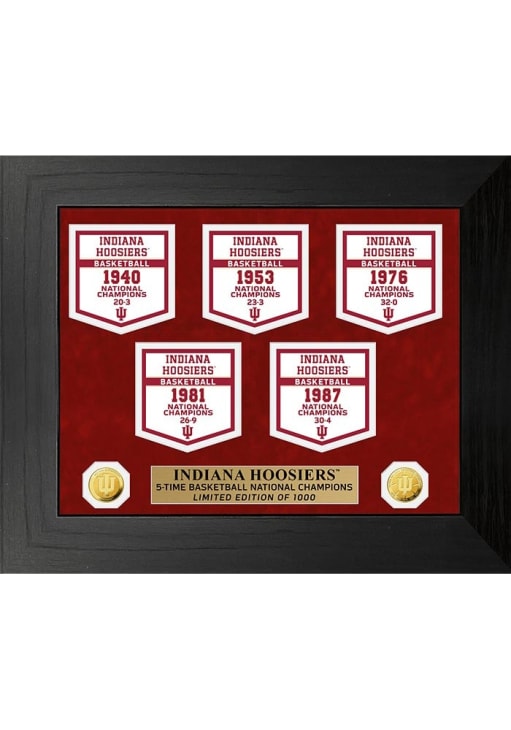 A way to show your team spirit is with this Indiana Hoosiers 18x22 Deluxe National Champions Banner Collection Plaque. This Plaque features a replicas of the Championship Banners for each National Championship in wood frame .