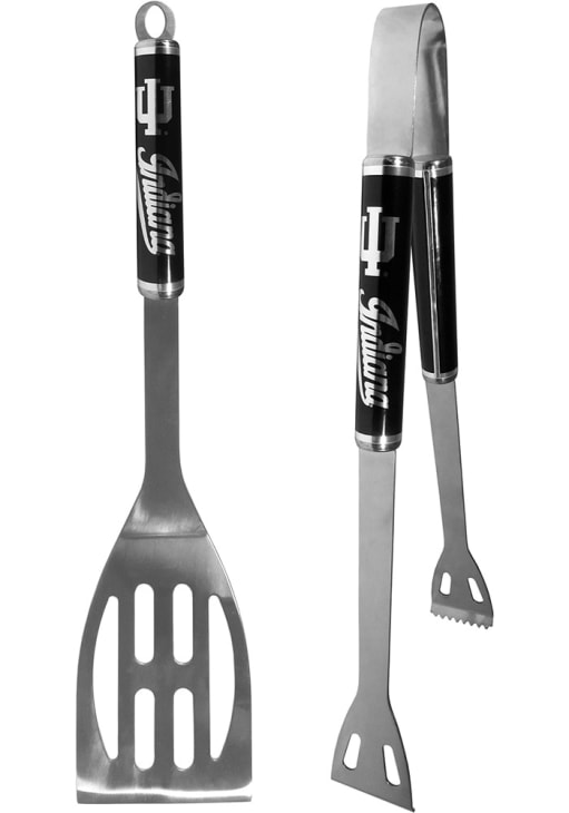 Product Details Product Details 2 piecesStainless steel tool setFeatures a spatula and tongsBlack and chrome with team graphicsThe tongs feature deep ridges for better grip Officially Licensed This Indiana Hoosiers Tool Set is a great way to show your Hoosiers pride while grilling at the tailgate. This Tool Set features a steel spatula and tongs that are 14 inches with team graphics in a monochrome design.