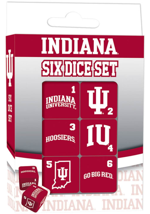 Product Details Product Details 6 Dice IncludedFeatures team logo in team colorTeam color dots on diceMakes for a great gift! Officially Licensed Have fun and show support for your team with this Indiana Hoosiers 6pc Dice Set Game. This Game features a team color and team logo for hours of Hoosiers fun.