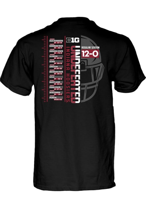 Display your team spirit with this remarkable Indiana Hoosiers Blue 84 Black Football 2025 Undefeated Regular Season Short Sleeve T Shirt! The Indiana Short Sleeve Tee showcases a screen print team graphic on left chest and across back that truly sets it apart. Stand out from the crowd and proudly declare your allegiance to the Hoosiers with this exceptional Black Indiana T Shirt. Indiana, Our Indiana!