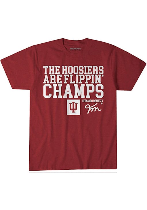 Display your team spirit with this remarkable Indiana Hoosiers BreakingT Crimson The Hoosiers Are Flippin' Champs Short Sleeve T Shirt! The Indiana Short Sleeve Tee showcases a screen print of player graphic on front chest that truly sets it apart. Stand out from the crowd and proudly declare your allegiance to the Hoosiers with this exceptional Crimson Indiana T Shirt. Indiana, Our Indiana!