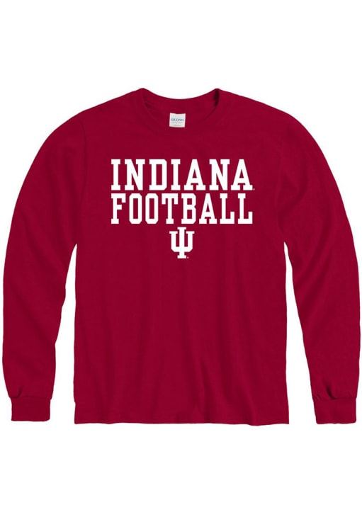 Show your Indiana Hoosiers spirit in this Indiana Crimson T Shirt! This Indiana Football Long Sleeve T Shirt makes a great layer for cooler nights cheering on the Hoosiers. Featuring a screen print Indiana Football with team logo on front chest, this Indiana Hoosiers Long Sleeve Tee is an essential addition for every fan. Indiana, Our Indiana!