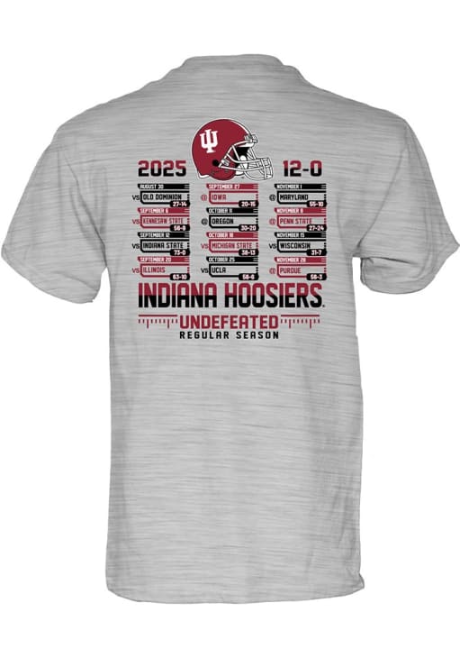 Display your team spirit with this remarkable Indiana Hoosiers Blue 84 Grey Football 2025 Undefeated Regular Season Short Sleeve T Shirt! The Indiana Short Sleeve Tee showcases a screen print team graphic on left chest and across back that truly sets it apart. Stand out from the crowd and proudly declare your allegiance to the Hoosiers with this exceptional Grey Indiana T Shirt. Indiana, Our Indiana!