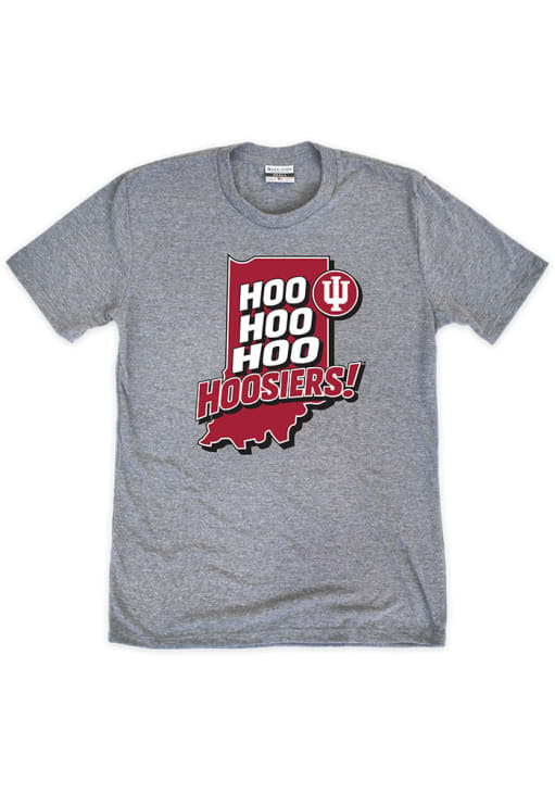Support your Indiana Hoosiers in this Grey Short Sleeve Fashion Tee! This Hoo Hoo Hoo Hoosiers State Outline Fashion T Shirt features a screen print graphic. Be ready to yell "Indiana, Our Indiana" when you wear this Indiana Short Sleeve Fashion T Shirt in your favorite stadium or on the street.