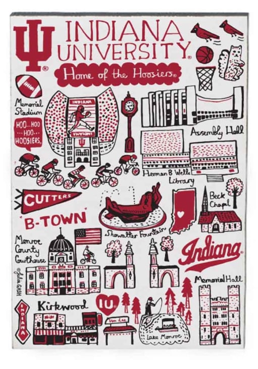 Showcase your Indiana Hoosiers spirit on your fridge at work or at home with this Indiana Hoosiers Julia Gash Jumbo Magnet. This Magnet features a hand drawn illustrations of campus landmarks by Julia Gash.