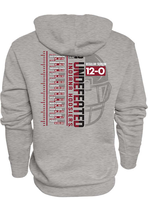 Embrace your Hoosiers pride and showcase your team spirit with confidence in this Indiana Hoosiers Long Sleeve Hoodie! Stay warm and stylish with the Indiana Mens Grey Football 2025 Undefeated Regular Season Hooded Sweatshirt. Designed with screen print team graphic, this Hoosiers Long Sleeve Hoodie is a must-have for dedicated fans.