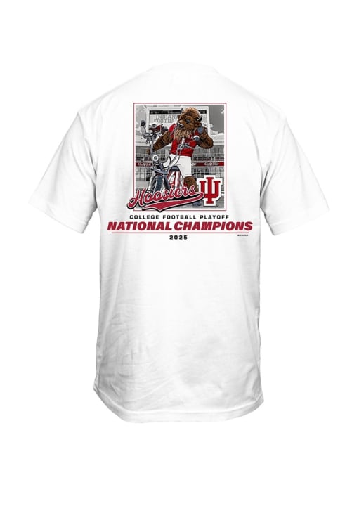 Display your team spirit with this remarkable Indiana Hoosiers White 2025 CFP National Champions Bison Stadium Short Sleeve T Shirt! The Indiana Short Sleeve Tee showcases a team graphic screenprinted on back and left chest that truly sets it apart. Stand out from the crowd and proudly declare your allegiance to the Hoosiers with this exceptional White Indiana T Shirt. Indiana, Our Indiana!