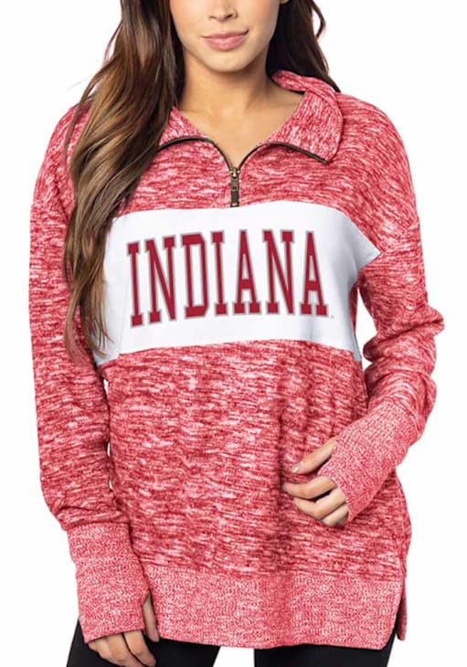 Embrace the warmth and showcase your Hoosiers pride with our Indiana Hoosiers Long Sleeve Qtr Zip. This Womens Cardinal Cozy Fleece Long Sleeve Pullover offers a screen print team name on center panel for the perfect combination of comfort and style. Elevate your everyday look with this must-have Indiana Hoosiers Long Sleeve Qtr Zip.
