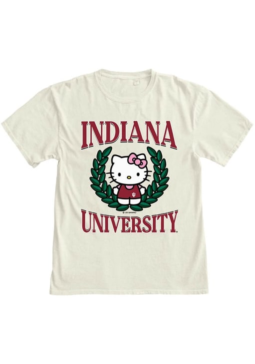 Display your team spirit with this remarkable Indiana Hoosiers Ivory Hello Two Ways Short Sleeve T-Shirt! The Indiana Short Sleeve Tee showcases a screen print team graphic with Hello Kitty on center chest and center back that truly sets it apart. Stand out from the crowd and proudly declare your allegiance to the Hoosiers with this exceptional Ivory Indiana T-Shirt. Indiana, Our Indiana!