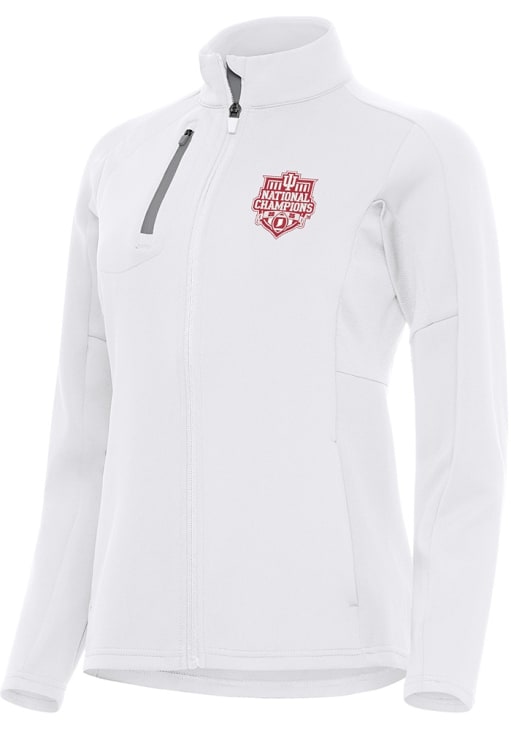 Stay warm and cozy with this Indiana Hoosiers Womens White 2025 CFP National Champions Generation Light Weight Jacket! Cheer on the Hoosiers in this Indiana Light Weight Jacket. With a self-fabric stand up collar, open cuff, hip pockets, and circular hemline, you won't want to be caught without this Light Weight Jacket on gameday.