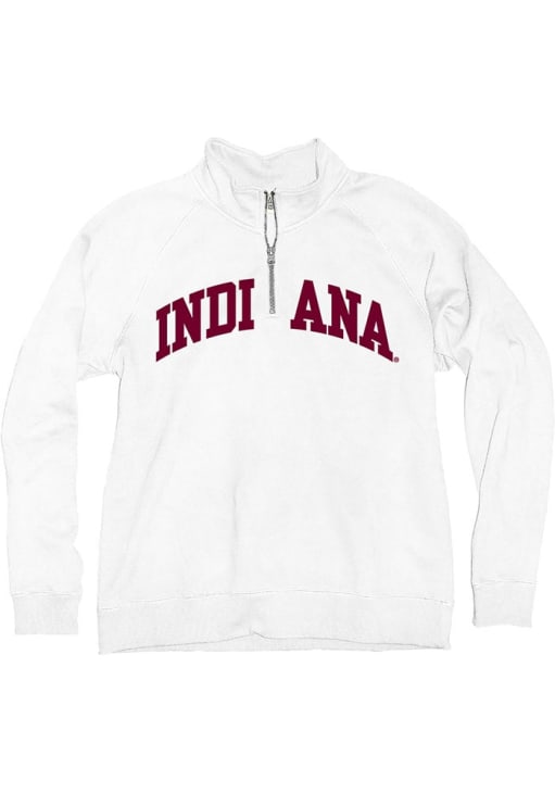 Embrace the warmth and showcase your Hoosiers pride with our Indiana Hoosiers Long Sleeve Qtr Zip. This Womens White Sanded Fleece Long Sleeve Pullover offers a applique team name on center chest for the perfect combination of comfort and style. Elevate your everyday look with this must-have Indiana Hoosiers Long Sleeve Qtr Zip.