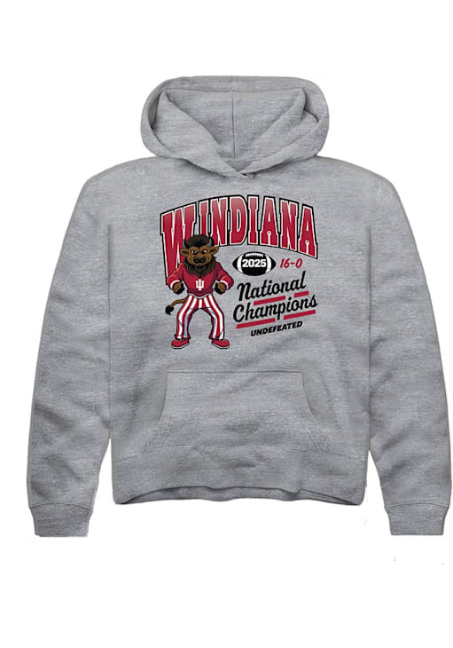 Go to gamedays in style in this Youth Graphite Indiana Hoosiers Summit Sportswear WINDIANA Arch 2025 National Champions Hooded Sweatshirt! This Hoosiers Hoodie features a team logo that will be sure to keep you warm and cozy.
