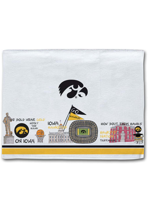 Product Details Product Details Beautifully printed team icon graphicsSoft Micro FiberTowel is 16" x 26"Laundry machine safeGreat hostess giftCotton Officially Licensed This Iowa Hawkeyes 16 inch x 26 inch Towel is great fro cleaning up after the tailgate. This Towel features a full-color team graphics and school icons, so you'll be ready for any mess cooking can throw your way
