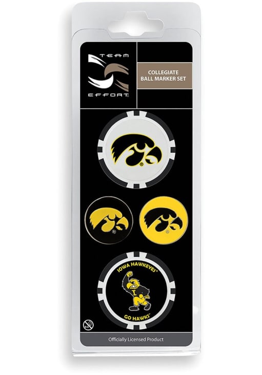 Product Details Product Details Team Effort 4-Pack Set Ball Markers4-Pack setTeam or league logo on each markerTwo oversized ball markersTwo smaller ball markersPLASTICImported Officially Licensed This Iowa Hawkeyes Golf Ball Marker is a great way to show your team spirit on the green. Keep track of where your golf ball landed with this Golf Ball Marker, which features a authentic team colors and logos.