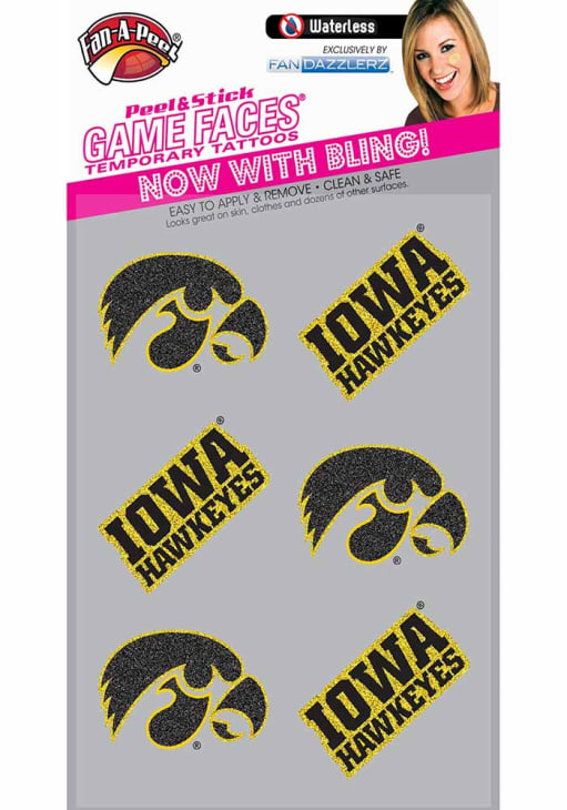 Product Details Product Details Glitter 6pk Officially Licensed Show off your Hawkeyes pride with this Iowa Hawkeyes 6pk Fandazzler Tattoo. This Tattoo features a team logo with team colors.