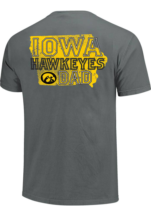 Display your team spirit with this remarkable Iowa Hawkeyes Charcoal Dad State Outline Short Sleeve T Shirt! The Hawkeyes Short Sleeve Tee showcases a screen print team graphics that truly sets it apart. Stand out from the crowd and proudly declare your allegiance to the Hawkeyes with this exceptional Charcoal Hawkeyes T Shirt. Go Hawkeyes!
