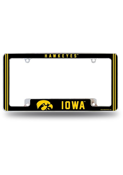 This Hawkeyes License Plate Holder features a team logo and team color.