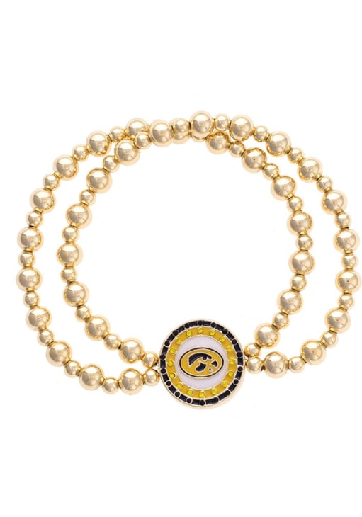 - This shiny gold-plated bracelet features two rows of polished ball beads and a glittering pave logo charm at the center