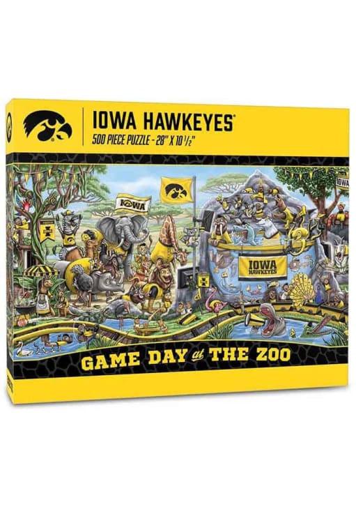 Product Details Product Details 10.5"x28" when completed500 piecesOriginal artworkCardboard materialGreat gift for fans of any age Officially Licensed Give yourself a challenge putting together this Iowa Hawkeyes Game Day at the Zoo Puzzle. This Puzzle features a picture of zoo animals geared up for the season.