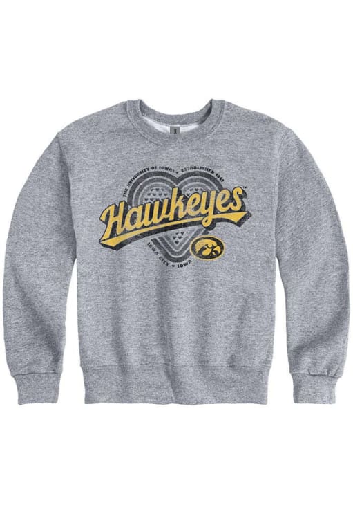 Size Chart for Girls Grey Iowa Hawkeyes Heart Long Sleeve Crew Sweatshirt