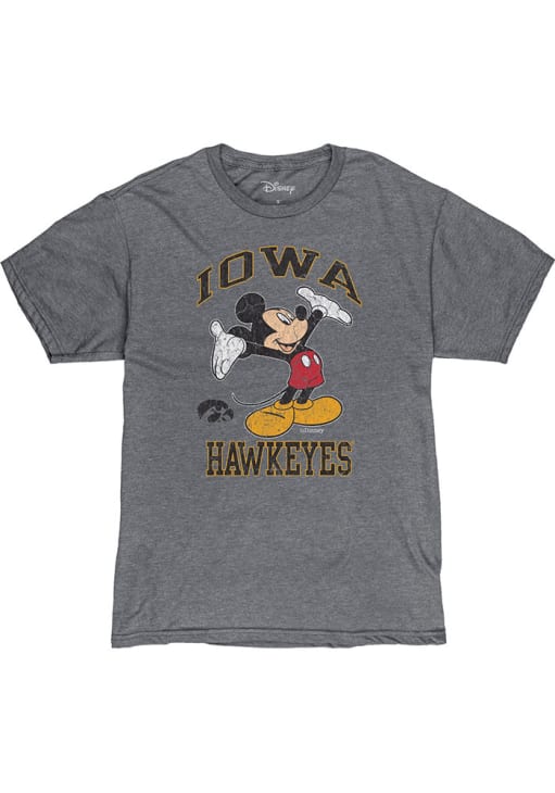 Support your Iowa Hawkeyes in this Grey Short Sleeve Fashion Tee! This Dis Right Here Mickey Fashion T Shirt features a screen print team name arched over Mickey Mouse with team mascot name below. Be ready to yell "Go Hawkeyes" when you wear this Hawkeyes Short Sleeve Fashion T Shirt in your favorite stadium or on the street.