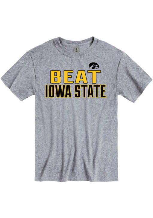 Display your team spirit with this remarkable Iowa Hawkeyes New Agenda Grey Beat Iowa State Short Sleeve T Shirt! The Hawkeyes Short Sleeve Tee showcases a screen printed Beat Iowa State on front that truly sets it apart. Stand out from the crowd and proudly declare your allegiance to the Hawkeyes with this exceptional Grey Hawkeyes T Shirt. Go Hawkeyes!
