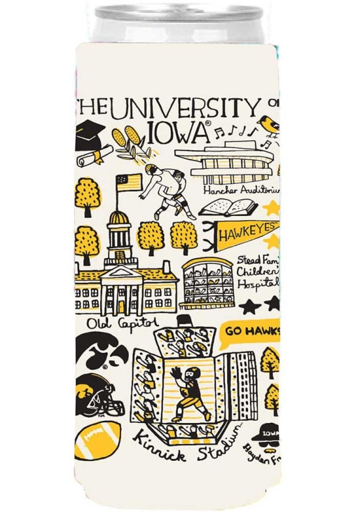 Product Details Product Details Keeps drinks coldHolds 12oz canTeam drawings in Julia Gash designMakes a great gift!Made of High Density Scuba Foam Officially Licensed This Iowa Hawkeyes Coolie is great for keeping your drink cold and showing your Hawkeyes spirit. Cheer on the Hawkeyes with this Coolie, which features a team colors and logo with Julia Gash design.