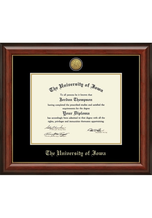 Iowa Hawkeyes Lancaster Diploma Frame is a great way to keep your Hawkeyes memories close. You'll love looking at your favorite Hawkeyes moments with this Diploma Frame, which features a showcase for your University of Iowa diploma in a USA-made frame. Overall Size 17.625" x 15.125". Go Hawkeyes!