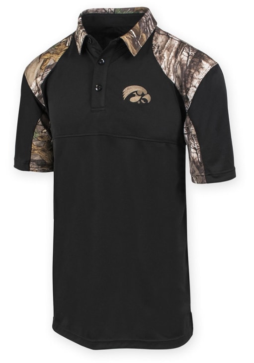 Enhance your professional style with this striking Mens Black Short Sleeve Polo Shirt! Showcase your team pride among colleagues with this exceptional Hawkeyes Black BRYAN Short Sleeve Polo. Stand out and make a statement in this Iowa Hawkeyes Short Sleeve Polo, featuring a screen print of Camo team logo on upper left chest that adds a touch of distinction to your look.