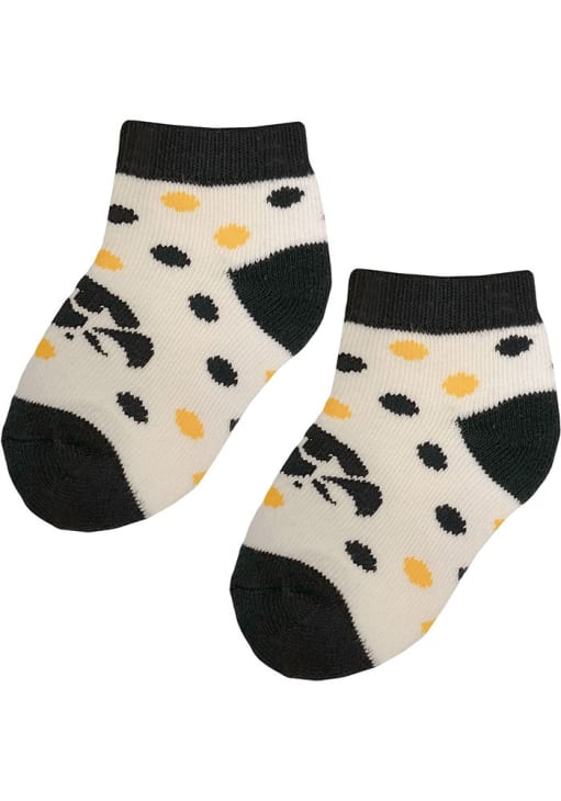 Product Details Product Details Double welt top for comfort and fitSmooth toe seam adds comfortComfort of cottonInfant - 6-18mToddler - 2-4TMachine wash Officially Licensed Keep your young Hawkeyes fan comfortable on gamedays with these cozy Iowa Hawkeyes Polka Dot Baby Quarter Socks from Rally House. Every little supporter will love these Black Quarter Socks, as they feature a team color polka dots and team logo.