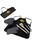Product Details Product Details Folds into easy-to-carry toteAdjustable shoulder strapTote folds out in to apron with team logoDeluxe BBQ set stored in side3 stainless steel BBQ toolsComes with chef's hatPerfect for barbecues, picnics, and campingPolyester ToteImported Officially Licensed Iowa Hawkeyes Apron Set will show your {Mascot Alia} pride. This Apron Set features a team logo and will look great at any tailgate. Go Hawkeyes!
