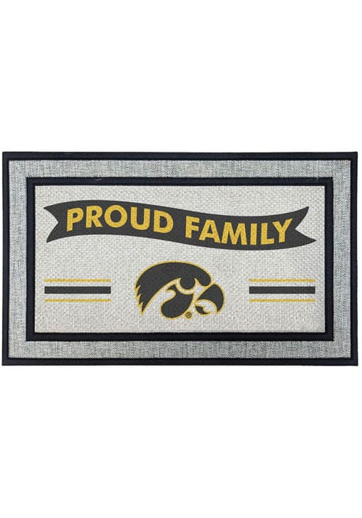 Product Details Product Details Constructed of 100% recycled rubber from tiresStylish two-tone neutral gray backgroundComplements any entrywayMade with weather-resistant, fade-resistant materialsNon-slip backing Officially Licensed This Iowa Hawkeyes Door Mat is a great way to greet guests. Dress up your porch with this Door Mat, which features a team logo.