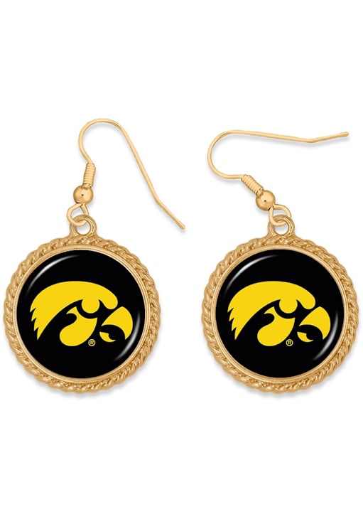 Product Details Product Details COTTON/POLY BLEND Officially Licensed Stand out with these Iowa Hawkeyes Sydney Earrings from Rally House! Your dedication to the Hawkeyes will shine with these Earrings featuring a team logo with team colors on gold metal.