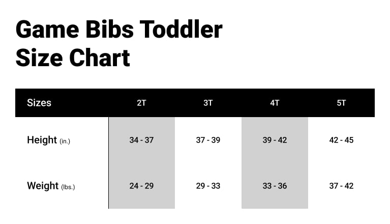 Size Chart for Toddler Black Gold Black Game Bibs Striped Bib Overall Sweatpants