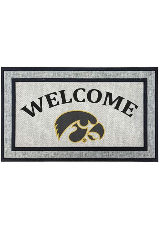 Product Details Product Details Constructed of 100% recycled rubber from tiresStylish two-tone neutral gray backgroundComplements any entrywayMade with weather-resistant, fade-resistant materialsNon-slip backing Officially Licensed This Iowa Hawkeyes Door Mat is a great way to greet guests. Dress up your porch with this Door Mat, which features a team logo.