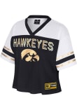 This remarkable Iowa Hawkeyes Womens Posh Fashion Football Jersey, showcasing a foil screenprint team neam and number on center chest with team name on back and stripes on sleeves. Elevate your admiration for Iowa Hawkeyes as you embrace this exceptional piece, designed to impress.