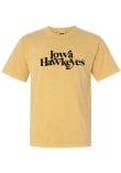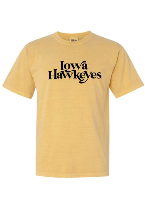 Display your team spirit with this remarkable Iowa Hawkeyes Gold Swoop Font Short Sleeve T-Shirt! The Hawkeyes Short Sleeve Tee showcases a screen print team name on center chest that truly sets it apart. Stand out from the crowd and proudly declare your allegiance to the Hawkeyes with this exceptional Gold Hawkeyes T-Shirt. Go Hawkeyes!