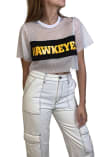 This remarkable Iowa Hawkeyes Womens Cropped Mesh Fashion Football Jersey, showcasing a screen print team logo on center panel. Elevate your admiration for Iowa Hawkeyes as you embrace this exceptional piece, designed to impress.