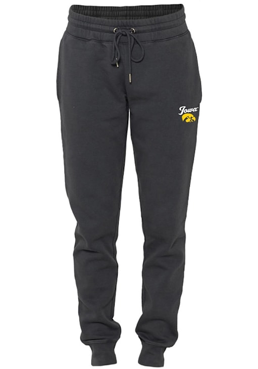 Cozy up in these Iowa Hawkeyes Womens Black Willow Jogger Sweatpants! Whether you're lounging at home or cheering at the game, these Hawkeyes Hawkeyes Sweats are a great way to show your Hawkeyes support in comfort. These Iowa Hawkeyes Sweatpants feature a screenprint team graphic on left hip.