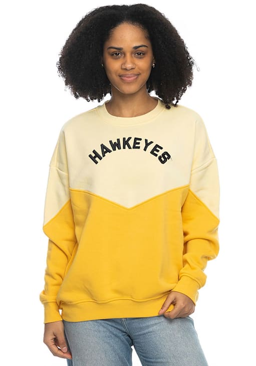 Gear up for the ultimate game day experience with this remarkable Iowa HawkeyesWomens Yellow Bestie Crew Sweatshirt! Designed with the true fan in mind, this Hawkeyes Long Sleeve Sweatshirt features a raised embroidered team name on center chest. Stay warm and comfortable with this Womens Hawkeyes Hawkeyes Crew Sweatshirt.