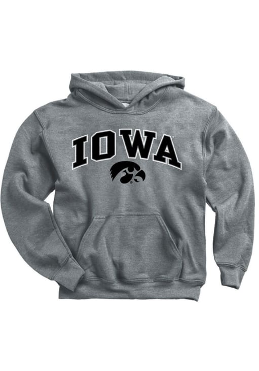 Go to gamedays in style in this Youth Grey Iowa Hawkeyes New Agenda Arch Mascot Hooded Sweatshirt! This Hawkeyes Hoodie features a screen print team graphic that will be sure to keep you warm and cozy.